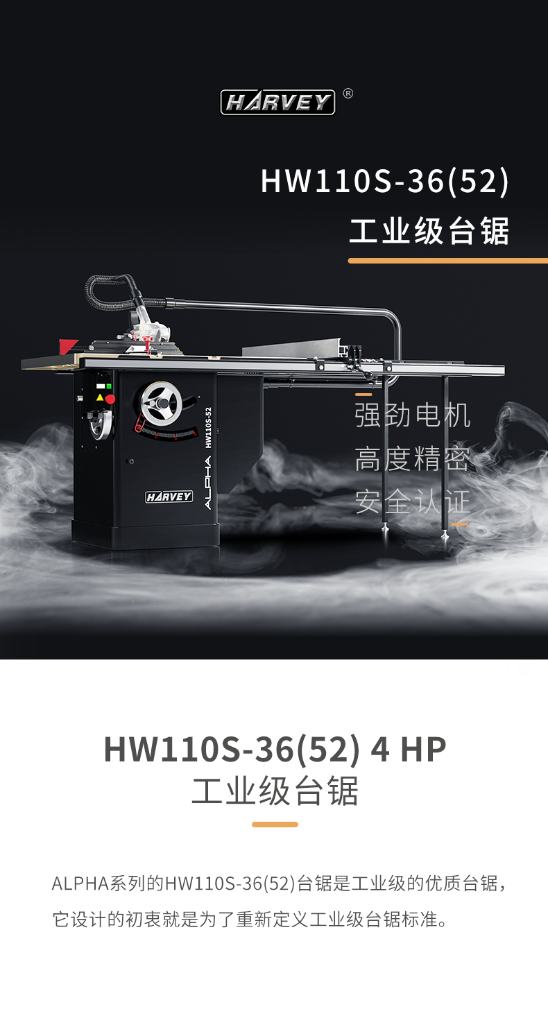 海威HARVER HW110S-36/52/36P/52P 10″ 超級木工臺鋸