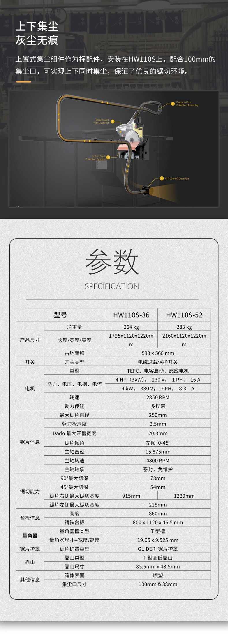 海威HW110S-36/52/36P/52P 10″ 超級木工臺鋸