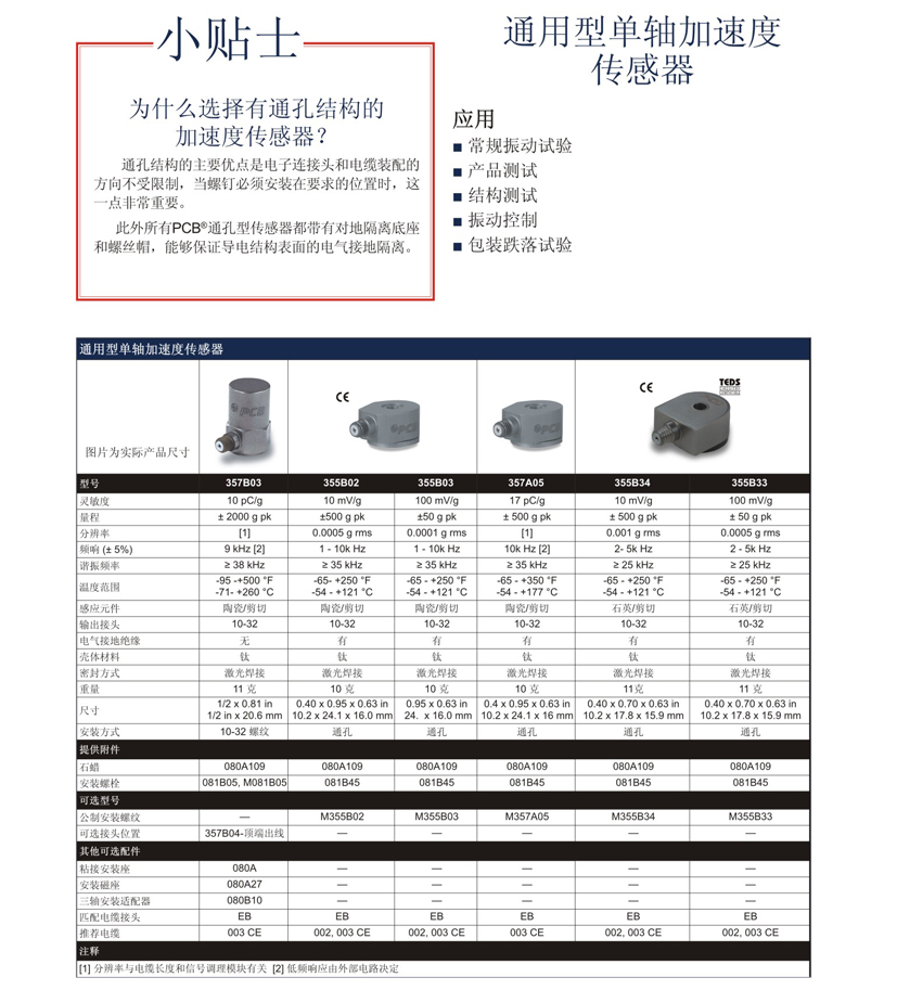 美國PCB加速度傳感器 355B03單軸 加速度傳感器 加速度計 產地:美國